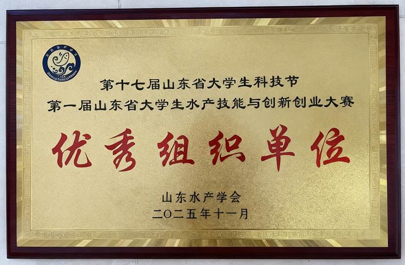 11月1日,山东省第十七届大学生科技节--第一届大学生水产技能与创新创业大赛在潍坊学院圆满落幕。我院参赛选手在此次高水平赛事中表现优异,斩获创新赛道一等奖1项、二等奖1项、三等奖2项,在水产理论与实践技能大赛二等奖1项、三等奖3项。此外,我院获评“优秀组织单位”称号。