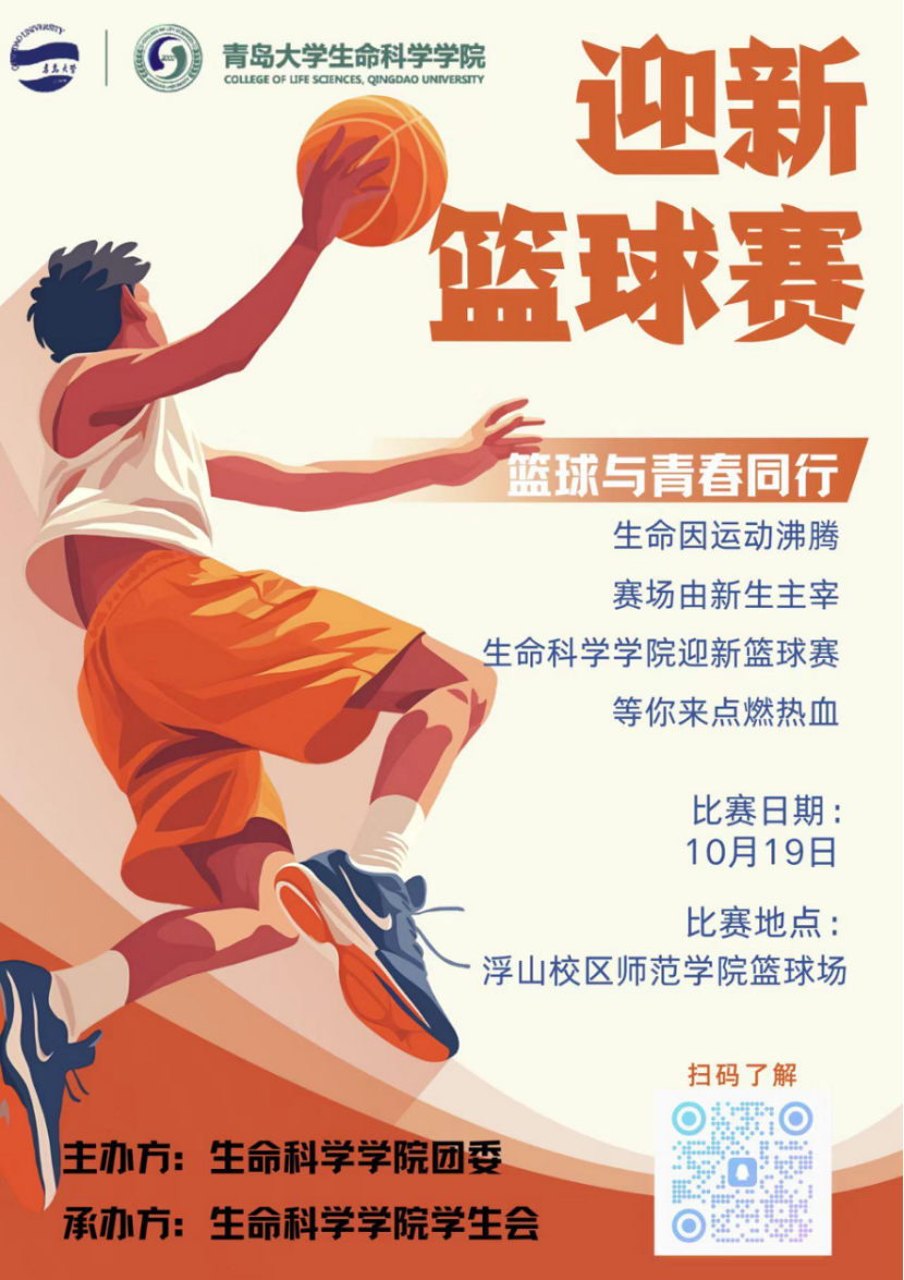 为丰富校园文化生活,营造积极向上的运动氛围,青岛大学生命科学学院“生跃赛场,篮途启航”迎新篮球赛于10月19日正式拉开序幕!