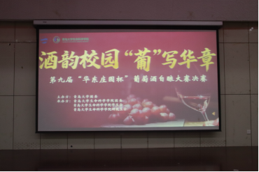 11月13日晚,生命科学学院“酒韵校园,‘葡’写华章”第九届“华东庄园杯”葡萄酒自酿大赛决赛于浮山校区图书馆报告厅举行。青岛大学团委书记李鹏,国家一级酿酒师、一级品酒师、高级工程师、华东葡萄酒公司副总工程师孟佳敏,青岛大学生命科学学院党委副书记张雪蕾,青岛大学《葡萄酒文化鉴赏》课程授课教师王嘉慧、赵珍以及各队伍所在学院教师代表受邀担任评委。生命科学学院学生会志愿者李怡卓、丛子尧担任主持。